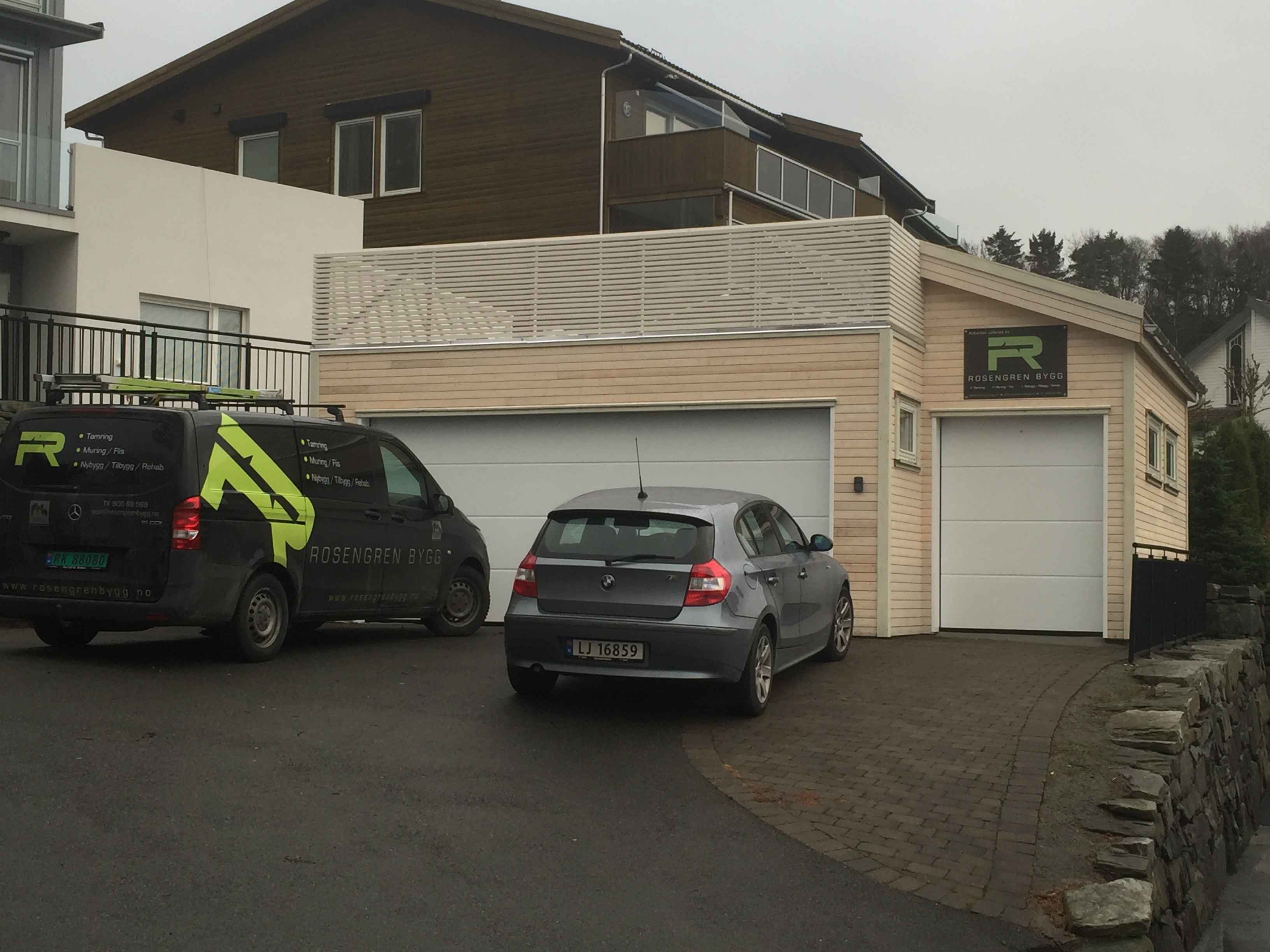 Ny garasje med terrasse oppå.