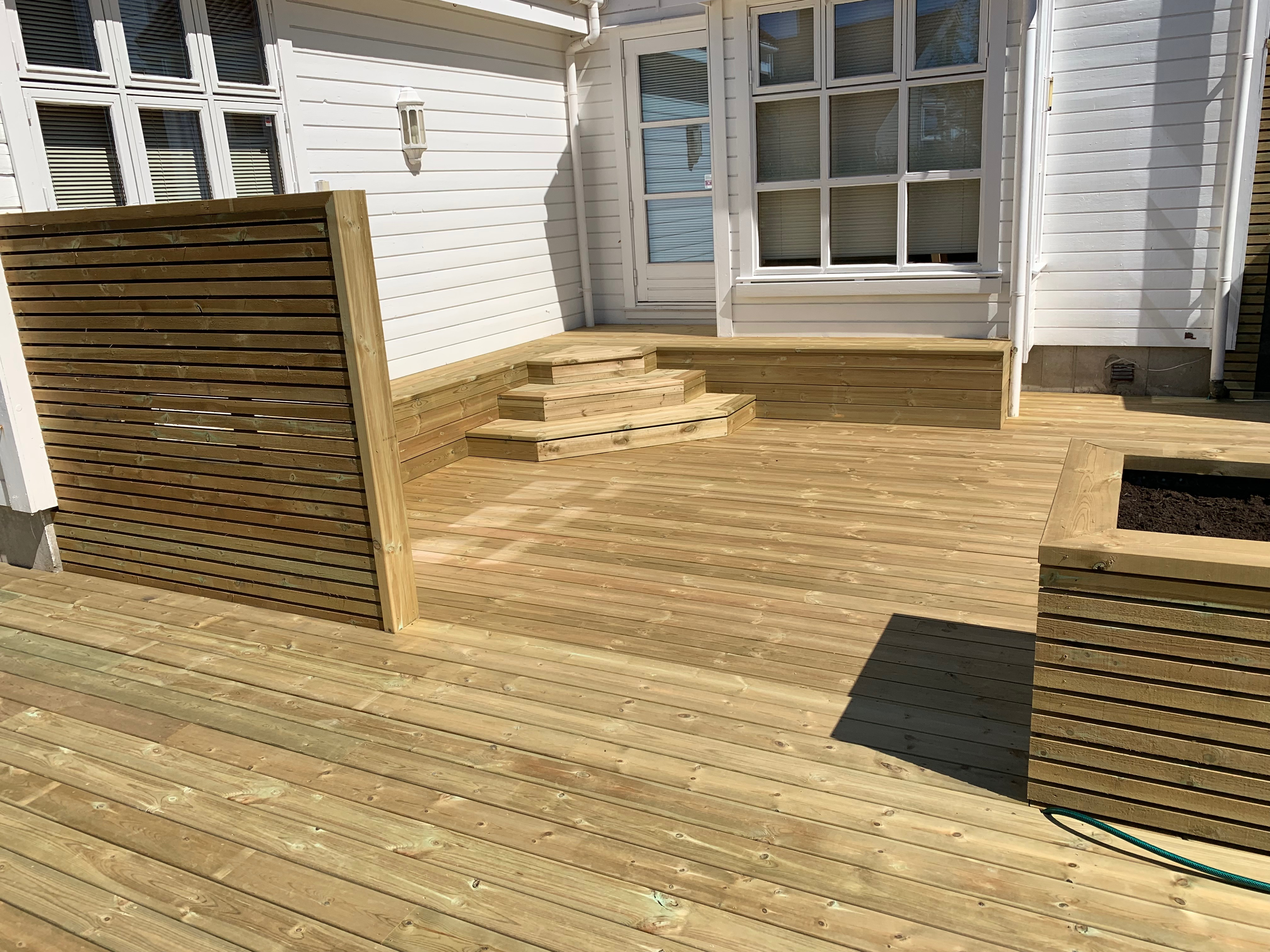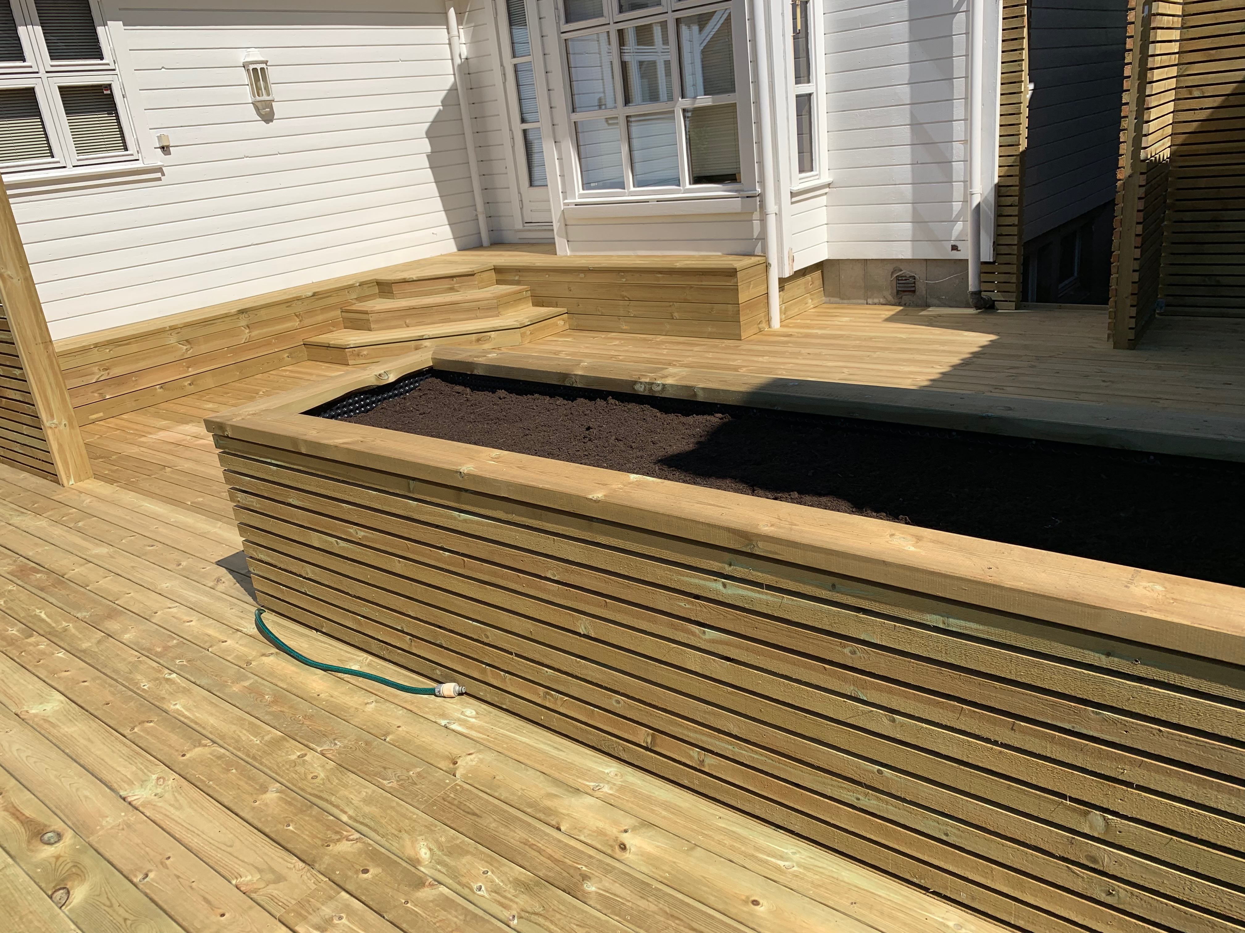 Bygge terrasse, levegger og trapp.